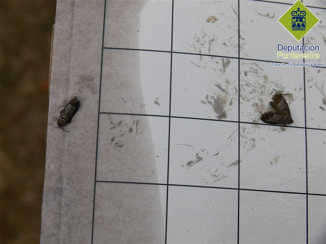 Estamos a ter as primeiras capturas nas trampas que temos instaladas, nun momento no que aínda non todas as variedades completaron a floración (outras si xa teñen froita en desenvolvemento). En calquera caso, sabemos que esta praga pode afectar de xeito diferente mesmo a predios próximos, polo que a instalación de trampas é un bo método para coñecer a situación concreta e optimizar os tratamentos cando se superen os limiares establecidos.