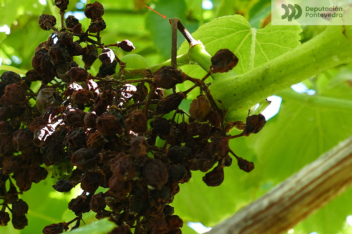 O tempo seco e a diminución da humidade relativa, así como as esfollas que se están ou estiveron a facer nas viñas, non favoreceron ao patóxeno. Porén, se finalmente para a semana se produce a precipitación que anuncian boa parte dos modelos meteorolóxicos consultados, a situación pode cambiar, en especial se a precipitación fai inchar a uva e esta pode estoupar (aínda que en principio non parece que vaia ser tan abundante). Amais, a potencial aparición deste patóxeno está tamén moi relacionada coa presenza de feridas de calquera natureza (avelaíñas, paxaros, rachos de roza...), de restos ou material necrosado (como son os acios secos por mildio larvado) e coa sensibilidade intrínseca de cada variedade debida ao compactos dos acios ou ao grosor da pel.