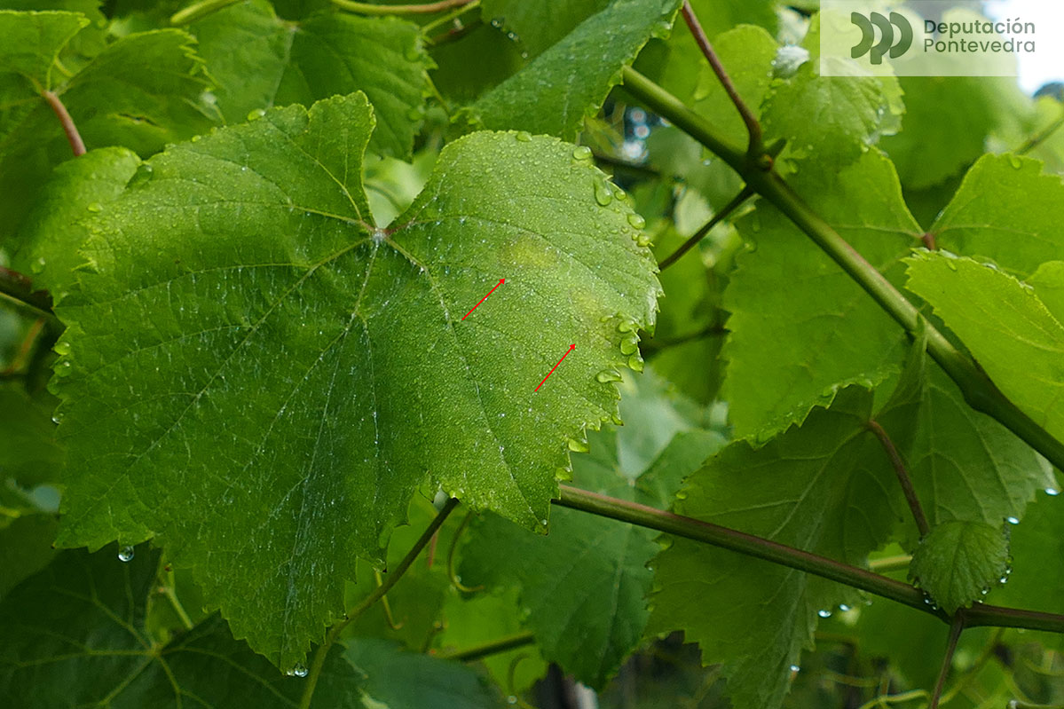 Malia ter habido condicións favorables, os tratamentos que se están a realizar están a controlar perfectamente as infeccións, cando menos nas viñas que revisamos nós. Tamén é certo que non vimos síntomas nas plantas testemuña que mantemos sen intervención de ningún tipo na campaña. Manter a vixilancia, en especial nas variedades máis sensibles.