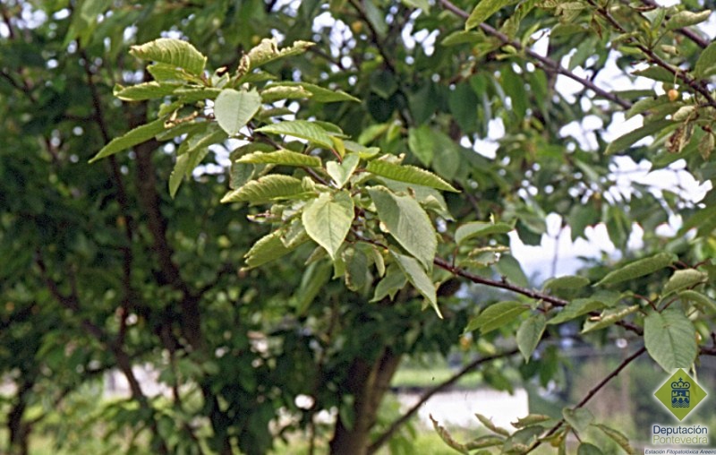 Nesta época é normal que neste tipo de árbores (cerdeiras, ameixeiras, etc) se manifesten claramente os síntomas desta patoloxía que está causada polo fungo Chondrostereum purpureum. Trátase dunha enfermidade moi grave que chega a matar ás árbores. Por iso, se afecta a poucas ramas, o mellor é eliminalas canto antes e destruílas (nunca deixalas no predio) para reducir o nivel de inóculo, protexendo os cortes cunha pasta funxicida. Amais, as podas invernais deben facerse sempre en tempo seco, desinfectando sempre as tesoiras.
