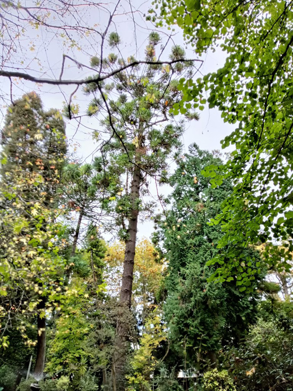 Á esquerda do estanque das Cunchas, onde se atopa o monumento ao apóstolo Santiago e ao mundo xacobeo, atópase a senlleira araucaria do Brasil (Araucaria angustifolia), unha das árbores máis destacadas do xardín, pola súa antigüidade e pola súa rareza. Forma parte do proxecto inicial de creación do xardín e tamén está incluída no Catálogo galego de árbores senlleiras. O exemplar, de 34 m de altura, considerado o maior de Galicia, comparte espazo cun exemplar de tuia xigante (Thuja plicata) e outro de criptomeria elegante (Cryptomeria japonica ‘Elegans').