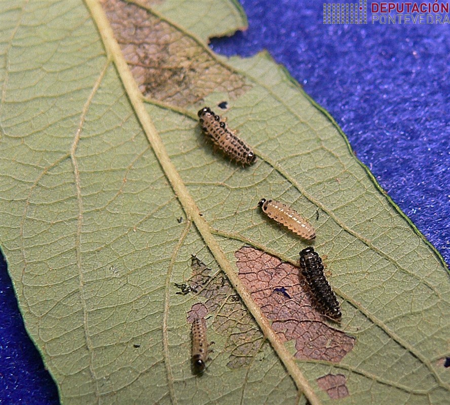 Nas árbores de ribeira dalgúns ríos comezan a ser notorios os síntomas típicos da alimentación destes insectos, que no estado adulto soen ser pequenos e ter cores metálicas. De lonxe, cando o ataque é intenso, as árbores teñen un aspecto seco que fai pensar en que pode tratarse doutros axentes causais (coma Phytophthora sp.). Porén, ao aproximarse é posible ver o dano característicos que se amosa nas imaxes de abaixo