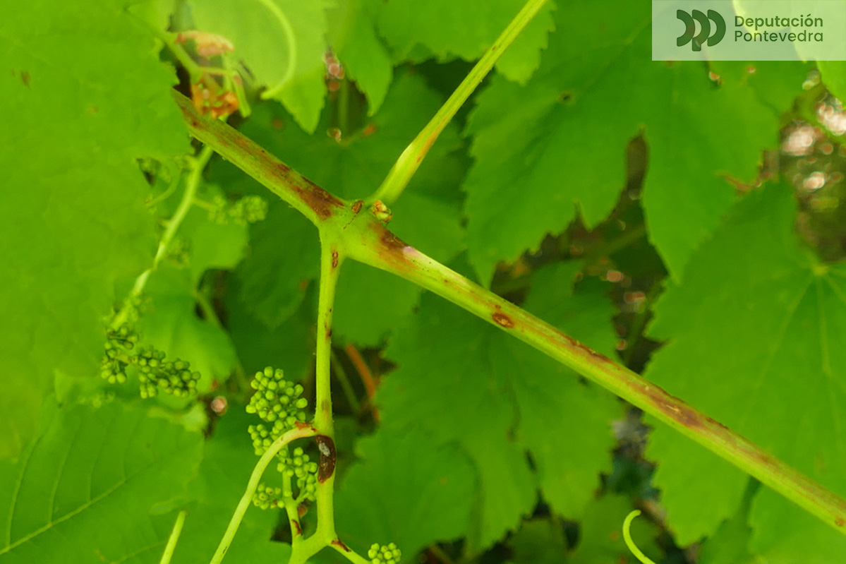 Polo de agora non observamos síntoma algún do fungo e aínda non realizamos o primeiro tratamento en ningún predio. Con todo, a viña entra agora nun período de maior sensibilidade, e este fungo pode desenvolverse nun amplo rango de condicións ambientais (o seu desenvolvemento óptimo dáse entre 25 e 30 °C, e entre 40 a 100% de humidade relativa), polo que é preciso incrementar a vixilancia, sobre todo nas plantas peor aireadas e de variedades máis sensibles. Amais, algunha axencia meteorolóxica anuncia néboas costeiras para algúns días, e como sabemos as néboas tamén lle resultan propicias.