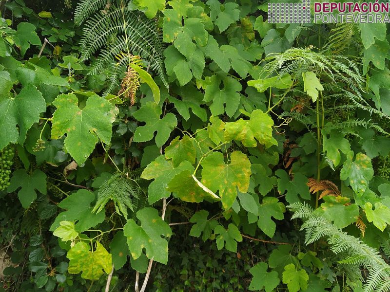 As peores situacións corresponderon a viñas con excesiva vexetación que, no caso das parras penduraba a modo de cortinas e, no dos espalleres, alcanzaba o solo, situacións que crean un ambiente aínda máis favorable ao fungo. Por outra banda, tamén atopamos un número moi elevado de manchas en todas as plantas abandonadas que tamén revisamos independentemente da súa variedade.