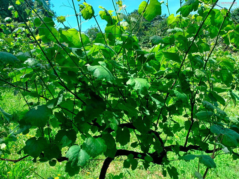 NOTA DO LUNS 22 DE MAIO: Vimos de facer unhas observacións rápidas nos arredores de Pontevedra e comprobamos que, tanto nas plantas tratadas da nosa viña de Areeiro (a última aplicación fora na primeira semana do mes), coma nas testemuña ou nunhas abandonadas que atopamos, empezan a aparecer manchas novas