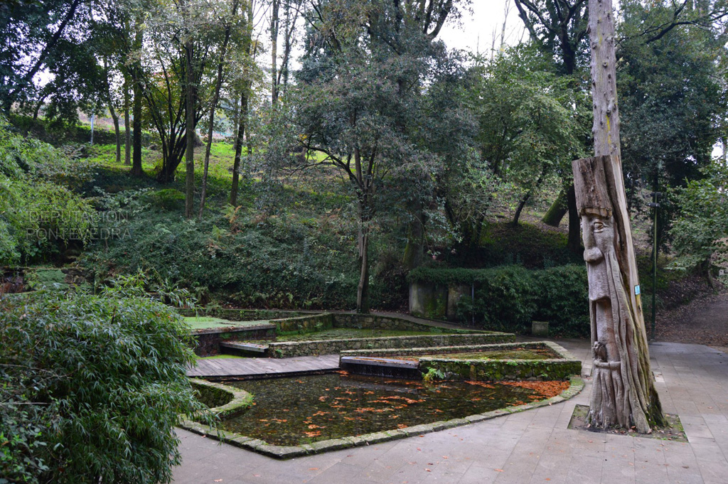 <Aunque se conservan algunos árboles de las plantaciones realizadas en el siglo pasado por la familia Briz Saraiva, la mayoría de los ejemplares pertenecen a plantaciones recientes realizadas por el Ayuntamiento de Marín.
