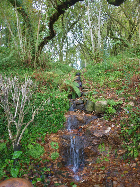 En el bancal ubicado a menor cota, al lado de la antigua casa de la familia Briz Saraiva, encontramos una lámina artificial de agua en la que destaca el juego conocido como tornillo de Arquímedes, en el que niñas y niños juegan a recoger el agua en un canal que, una vez lleno, desagua nuevamente en el estanque artificial. Alrededor de este estanque se encuentran varios equipamientos infantiles, entre ellos: un tobogán, dos columpios, tres mallas elásticas para saltar, un elemento giratorio y tres pequeñas setas para escalada. Alrededor del estanque artificial se plantaron diversos árboles frutales, como cerezos (Prunus avium), limoneros (Citrus x limon) o naranjos (Citrus x sinensis), dedicados al sentido del gusto, con la idea de que las frutas producidas por ellos puedan consumirlas las personas visitantes.