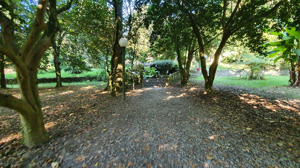 El pazo cuenta con cincuenta y cuatro hectáreas de jardín, finca y arboleda. Posee un importante jardín botánico, con especies exóticas y autóctonas, creado en 1949 bajo la denominación de arboreto, que reúne aquellas especies plantadas en él desde el siglo XIX hasta la actualidad. Además de las especies que por su importancia a nivel natural, paisajístico y cultural están incluidas en el Catálogo gallego de árboles singulares, como el cedro del Líbano, la Metasequoia glyptostroboides y la formación de castaños japoneses y chinos, destacan también otras especies forestales como el olmo holandés, las palmeras reinas o la avenida de magnolias. Los cultivares de 'Alba Plena' que crecen en estos jardines son impresionantes.