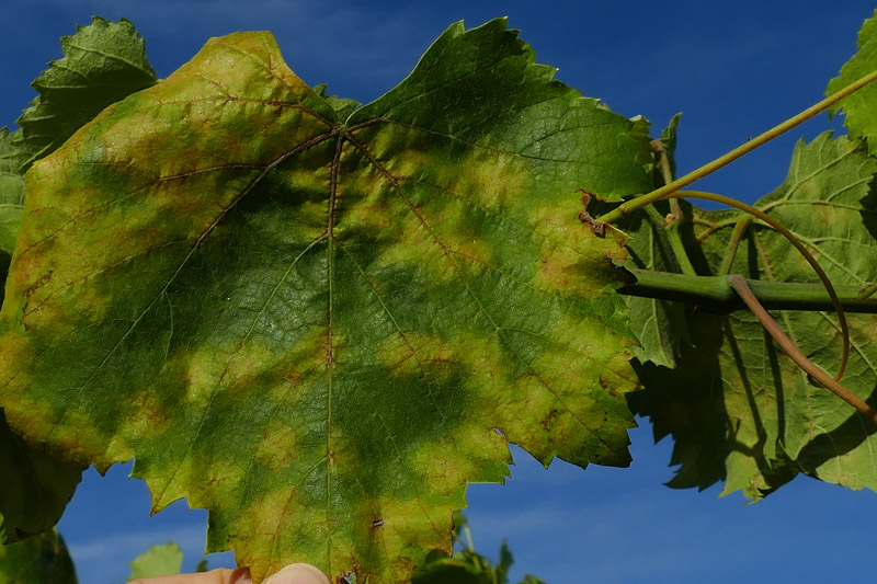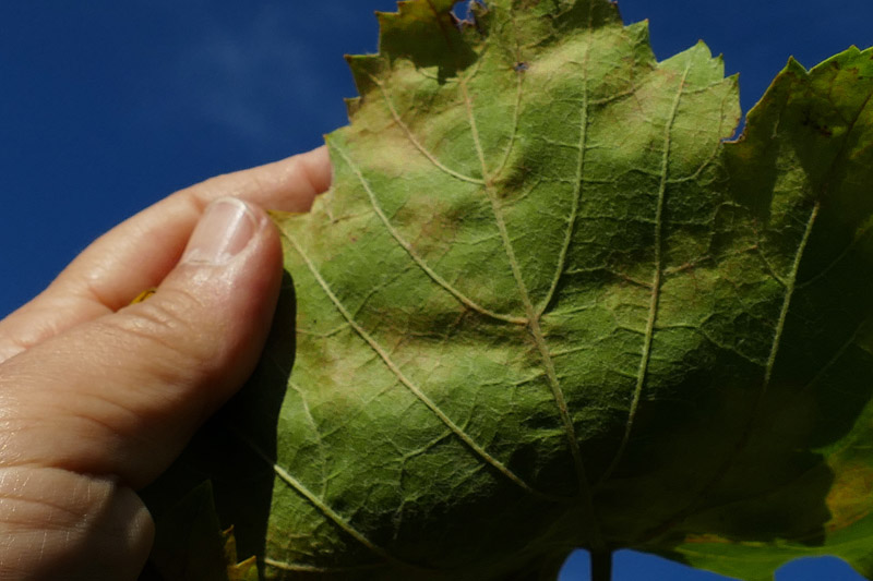 Unicamente observamos síntomas recentes en follas novas e pampos de plantas testemuña sen tratamentos. En realidade, e sempre falando en xeral, esta campaña mildio e oídio causaron poucos danos na nosa zona e foron facilmente controlados cos tratamentos aplicados.