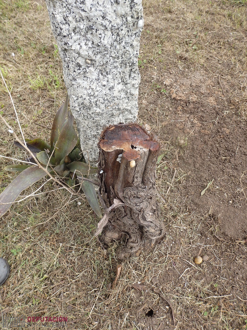 Por outra banda, vimos que nalgunha viña quedan no terreo restos de madeira grosa de poda e tamén tocos de plantas eliminadas. Hai que retirar ambos tipos de material para evitar que incrementen o inóculo de patoloxías de madeira.