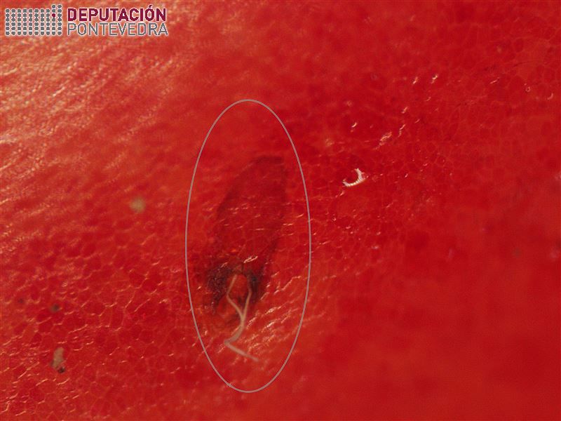 Estamos a ter as primeiras capturas nas trampas que temos instaladas, nun momento no que aínda non todas as variedades completaron a floración (outras si xa teñen froita en desenvolvemento). En calquera caso, sabemos que esta praga pode afectar de xeito diferente mesmo a predios próximos, polo que a instalación de trampas é un bo método para coñecer a situación concreta e optimizar os tratamentos cando se superen os limiares establecidos.