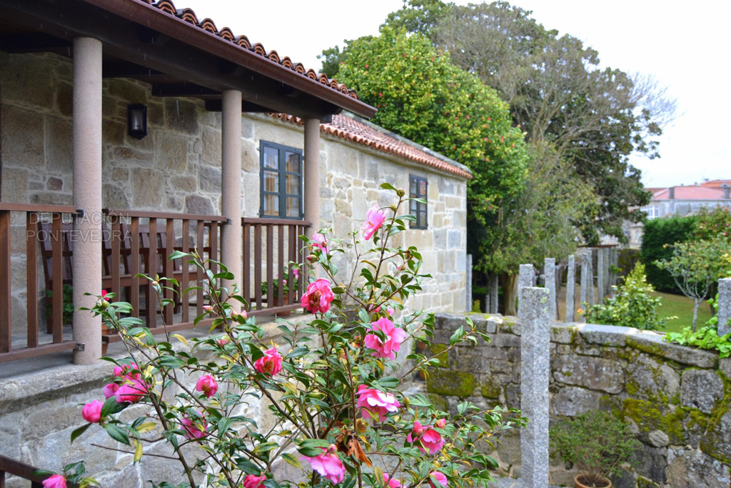 En el tramo de acceso al jardín principal encontramos una caseta de aseos —otrora cuadras y gallinero—, en cuyos laterales se cultivan rosales, rododendros arbóreos y azaleas. Junto a las escaleras de acceso a la planta superior de la casa hay un jardín de aromáticas (hierba luisa, abrótano, romero, orégano, tomillo, hierbabuena, ruda...) con una camelia híbrida (Camellia x williamsii) de grandes flores color rosa lavanda.