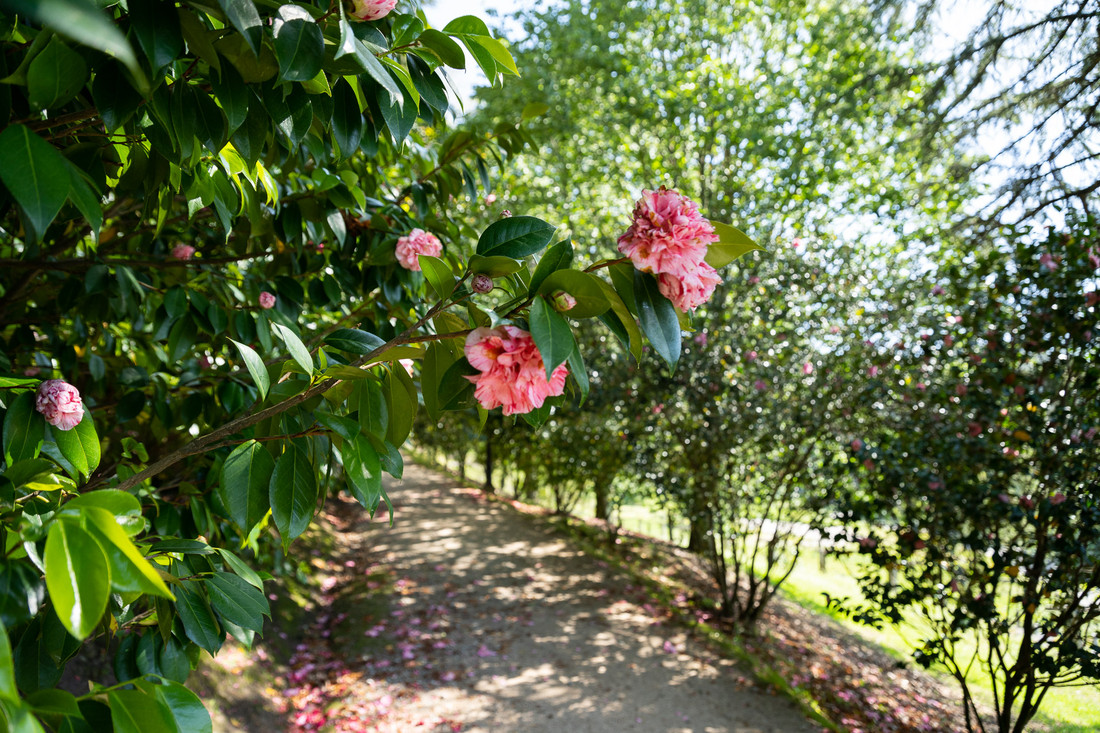 Entre el parque botánico y las parcelas colindantes existen 442 plantas de camelia de veinticinco especies distintas y muchos híbridos. En el conjunto destacan los diecinueve ejemplares de Camellia japonica que ya existían cuando este fue adquirido por la Diputación, algunos de los cuales datan del siglo xix. Uno de estos ejemplares, formado por dieciocho troncos que crecen desde la base del árbol, tiene la circunferencia del tronco más grande de Galicia y un diámetro de copa de diecisiete metros.