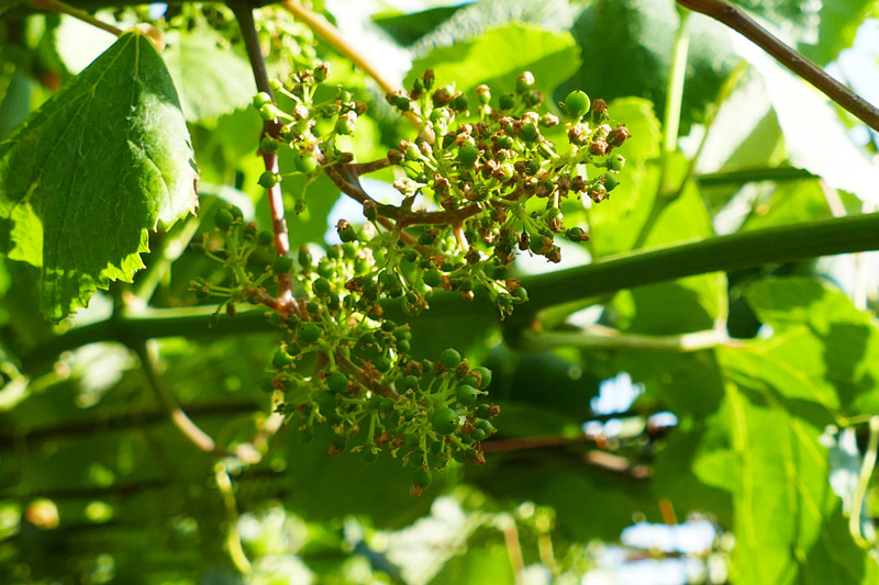 Nas visitas realizadas esta semana ás viñas (luns 2 e martes 3) notamos, na grande maioría de predios, un claro avance na fenoloxía das viñas, que se manifestou non só en que case todas elas, cando menos no referente ao albariño, xa terminaron a floración, senón tamén en que incrementaron bastante o tamaño dos grans. Ademais, o feito de que este decisivo estado da planta transcorrera, en xeral, sen choivas, permitiu que boa parte dos capuchóns ou restos florais xa estean desprendidos e que polo tanto haxa que falar dunha floración limpa.