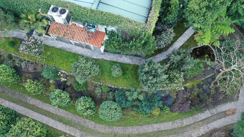 Desde la casa principal se puede acceder a la parte inferior del terreno bajando por unas escaleras que constituyen uno de los rincones más hermosos, ya que discurre entre helechos arbóreos que le dan a ese entorno la apariencia de otra época.