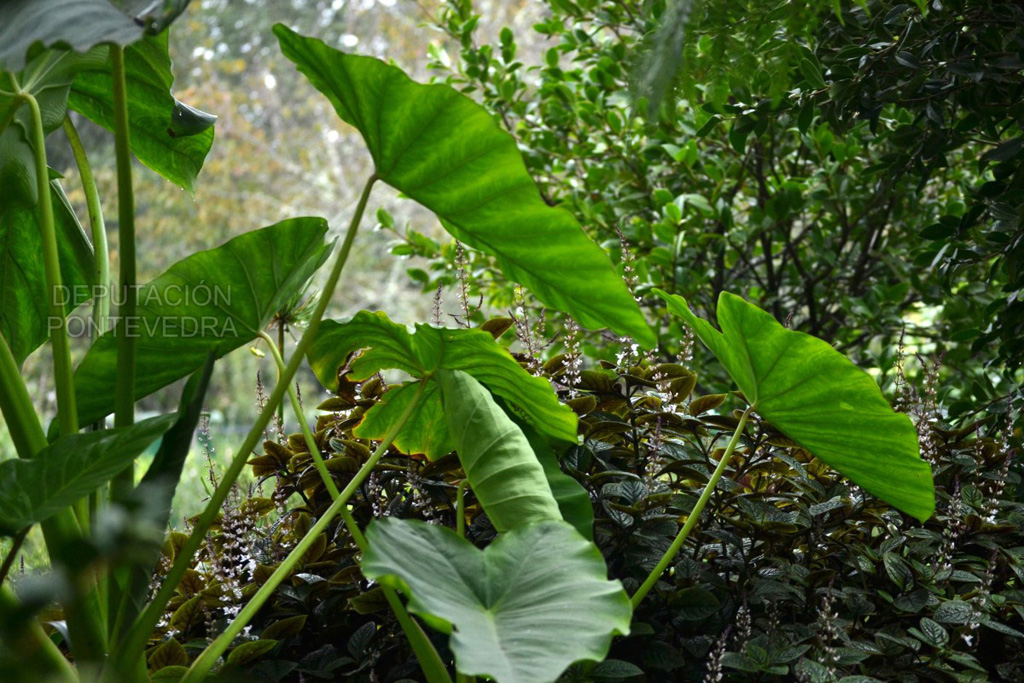 La parte alta se divide en tres áreas dispuestas en terrazas. En la superior hay una plantación experimental de viña albariña; en la media, una plantación de nogales (Juglans regia), que comparte espacio con un vivero forestal. En la parte baja, dividida por una pantalla de cipreses de Lawson (Chamaecyparis lawsoniana) y de falsos cipreses Sawara (Chamaecyparis pisifera ‘Squarrosa'), se encuentran siete ejemplares de la antigua plantación de aguacates (Persea americana), reconvertida desde 2010 en jardín, que cohabitan con ejemplares de interés ornamental como Grevillea robusta, ombúes (Phytolacca dioica), jaracandas (Jacaranda mimosifolia), cipreses de los pantanos (Taxodium distichum), un árbol de Júpiter (Lagerstroemia subcostata) y una reciente colección de cítricos. Aunque este jardín contiene los ejemplares más nuevos, debido a la variedad de especies que crecen en él y a su diseño, se convertirá en pocos años en un espacio con un importante valor paisajístico.