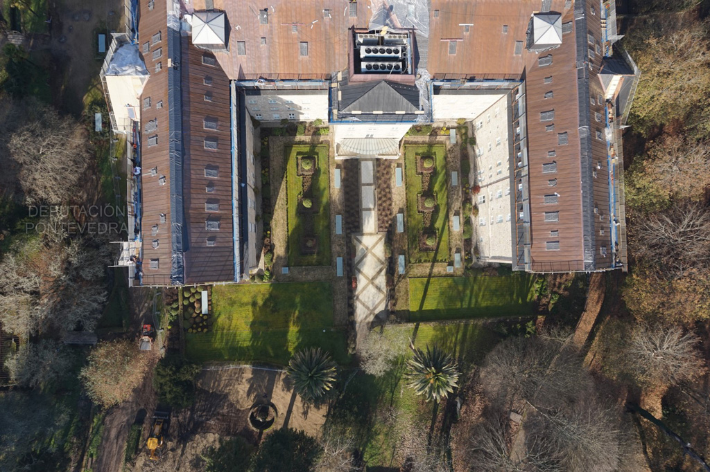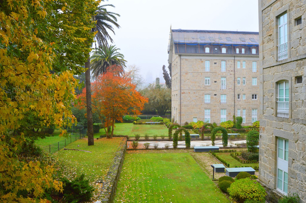 • El robledal centenario, anterior al hotel, consta de unos 50 individuos de buen porte en buen estado sanitario, el mayor con 28 m de altura y el más grueso con 5,2 m de perímetro. Entre ellos (Quercus robur) crecen dos pies del híbrido Quercus x andegavensis, raramente visto en zonas verdes y desconocido en Galicia con ese tamaño.