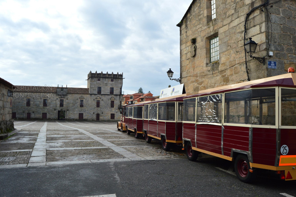 Situado en la plaza de Fefiñáns, es un edificio en forma de L, de gran belleza y adornado con balcones y escudos. En la fachada, haciendo esquina, encontramos la torre del homenaje, edificada en 1525 con un marcado estilo renacentista. Hacia el norte se conserva un puente de piedra que salva el antiguo camino real a Caldas de Reis (hoy avenida de Rosalía de Castro) con una rica balaustrada granítica y, en el extremo, una pequeña construcción finalizada en cúpula decorada con pináculos. También hacia el norte encontramos la iglesia de San Bieito, capilla del pazo y panteón de la familia, con sus fachadas decoradas con los escudos de los vizcondes.