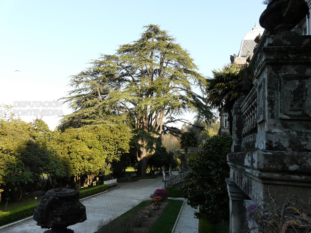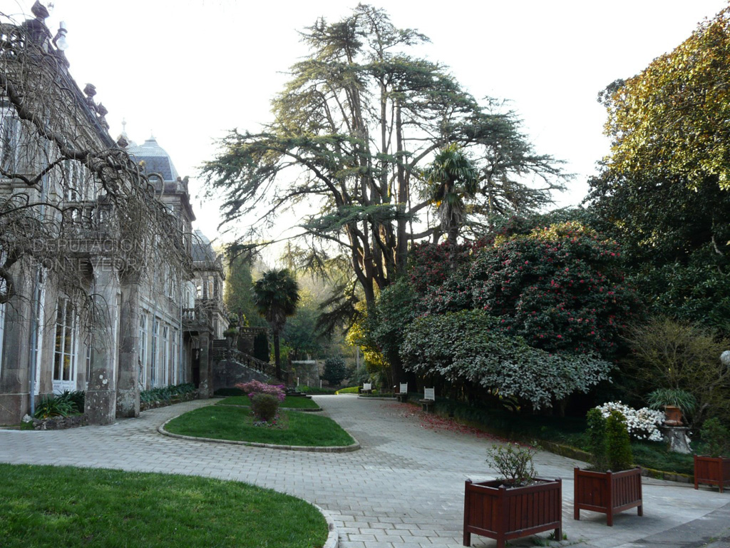 El pazo cuenta con cincuenta y cuatro hectáreas de jardín, finca y arboleda. Posee un importante jardín botánico, con especies exóticas y autóctonas, creado en 1949 bajo la denominación de arboreto, que reúne aquellas especies plantadas en él desde el siglo XIX hasta la actualidad. Además de las especies que por su importancia a nivel natural, paisajístico y cultural están incluidas en el Catálogo gallego de árboles singulares, como el cedro del Líbano, la Metasequoia glyptostroboides y la formación de castaños japoneses y chinos, destacan también otras especies forestales como el olmo holandés, las palmeras reinas o la avenida de magnolias. Los cultivares de 'Alba Plena' que crecen en estos jardines son impresionantes.