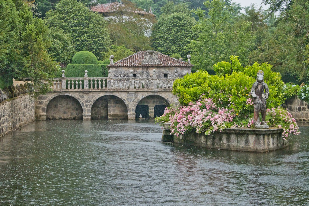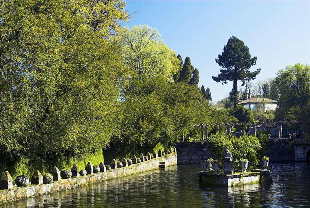 La incorporación de bolas, pináculos, bestias heráldicas y cañones no hace más que aumentar la magnificencia del lugar, caracterizado ya por su espléndida capilla, su muralla ciclópea, los jardines singulares y el arbolado exótico, señoreados por un elemento que lo domina todo: el agua.