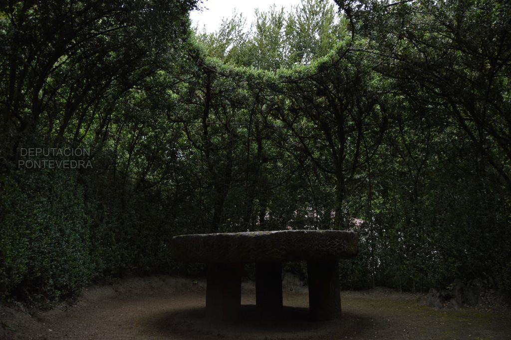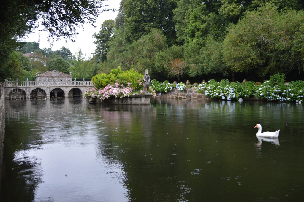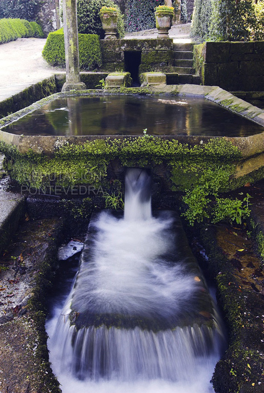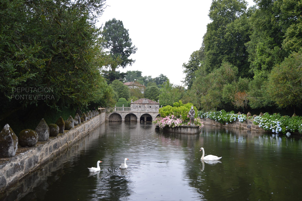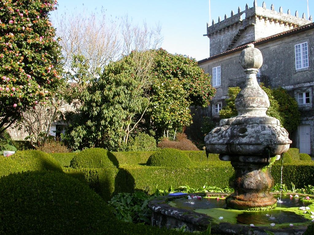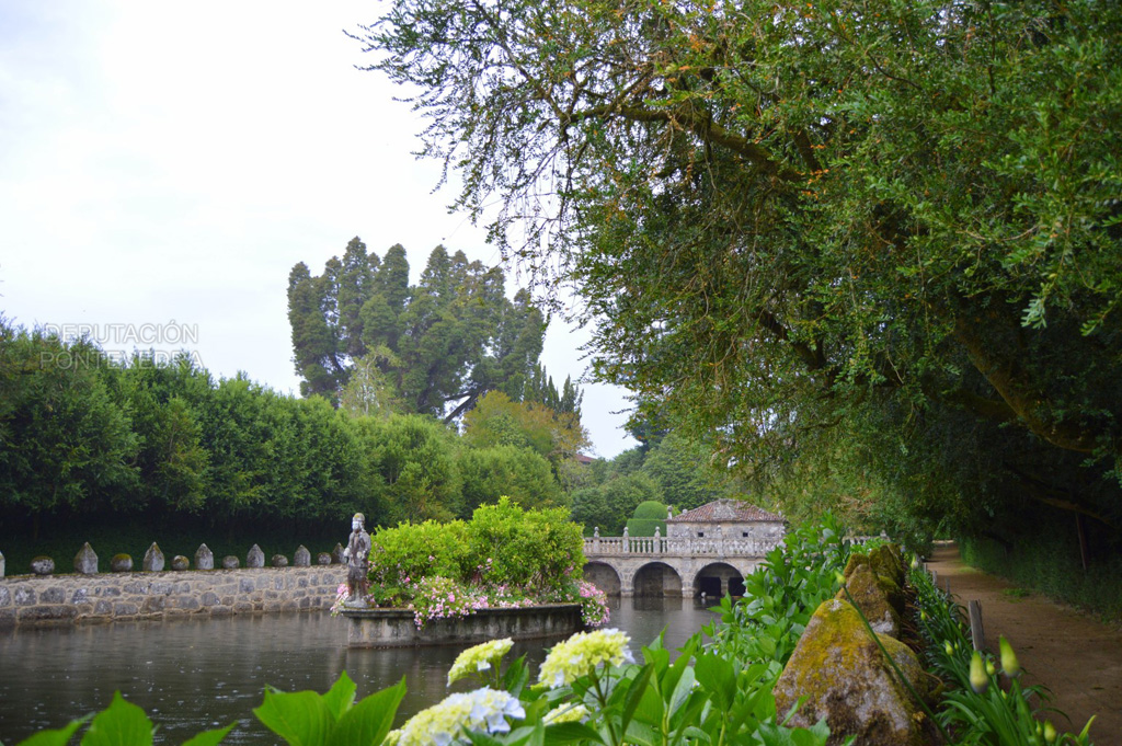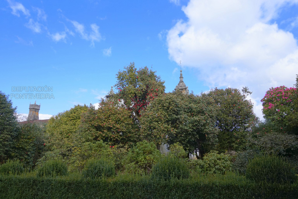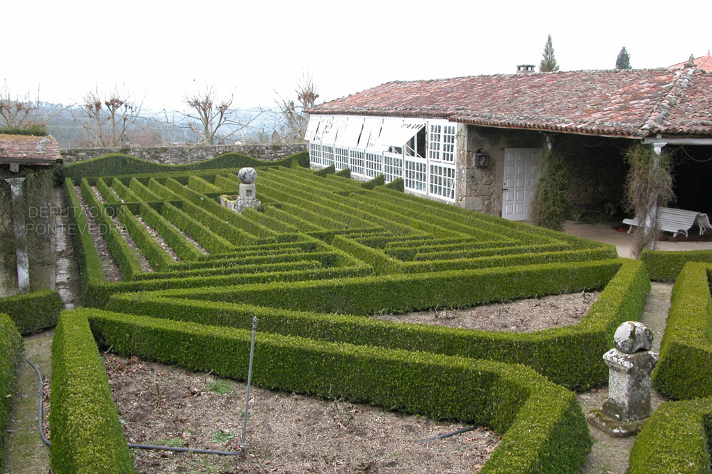 Se distinguen en el pazo dos tipos de jardines. El hortícola, con cuadros dedicados a distintos cultivos, que es atravesado diagonalmente por el conjunto del lavadero, el río y el molino, y a su vez bordeado este último por una alineación de bojes de considerable edad y árboles de cítricos.