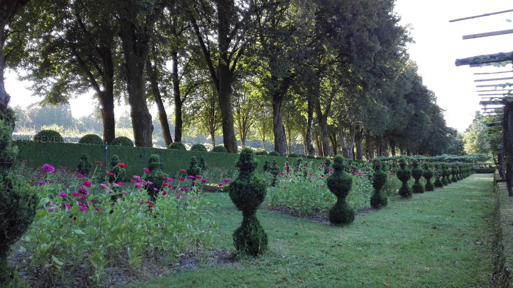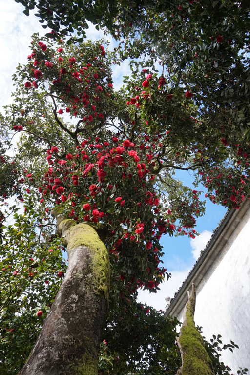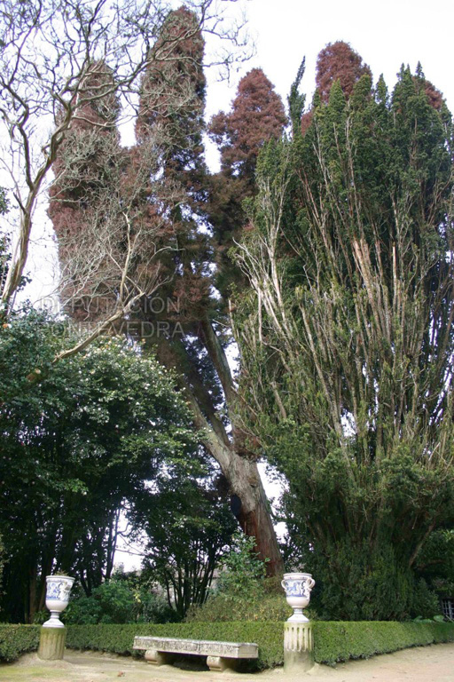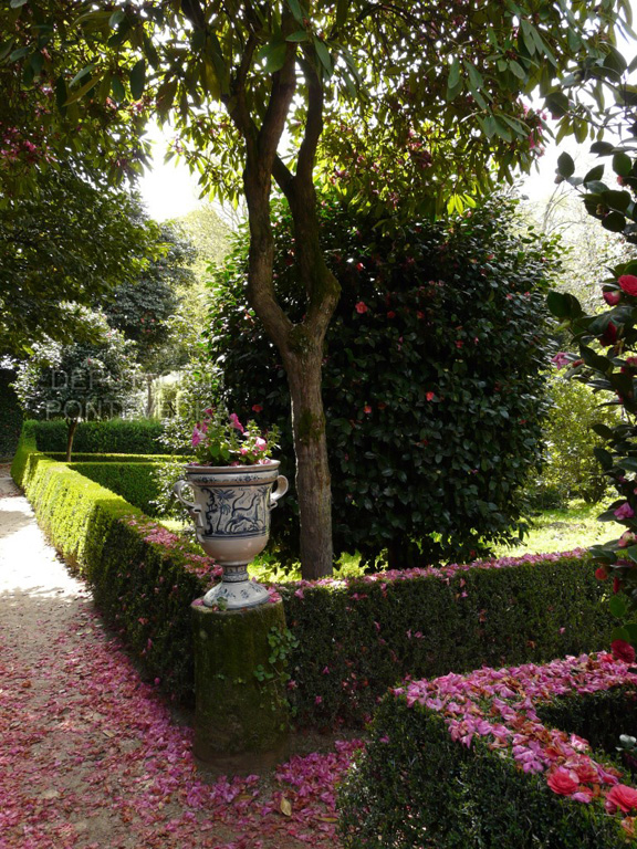 Por su parte, el jardín geométrico se compone de siete macizos de flora excepcional: la Camellia reticulata es el árbol más destacado, seguido por otros importantes ejemplares de criptomeria, tejos, magnolias perennifolias, árboles de Júpiter, secuoyas rojas, arces blancos, laurocerasos y una importante masa de antiguas camelias que forman paseos. La Carreira do Conde, con su paseo arbolado, linda con la otra parte del jardín, de corte inglés, donde conviven una pradera arbolada y un bosque ornamental, en el que cabe destacar una fotinia y un tulipero de Virginia, además de la avenida de tilos.
